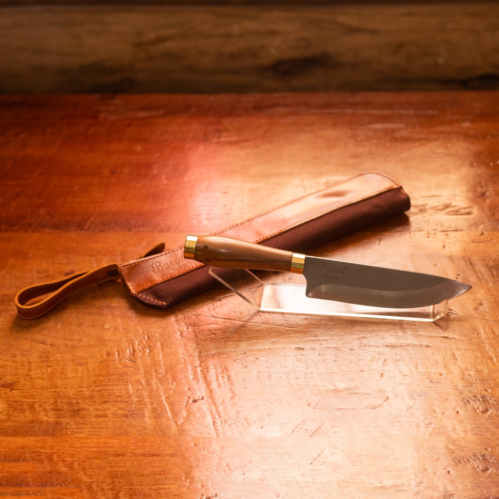 Essa faca, que tem o desenho da faca chef, é em um tamanho bem menor, o que a torna uma ótima opção para cortar legumes com facilidade. Além disso, ela é um excelente auxiliar no corte de carnes, ajudando a preparar seus ingredientes de forma prática e eficiente.
