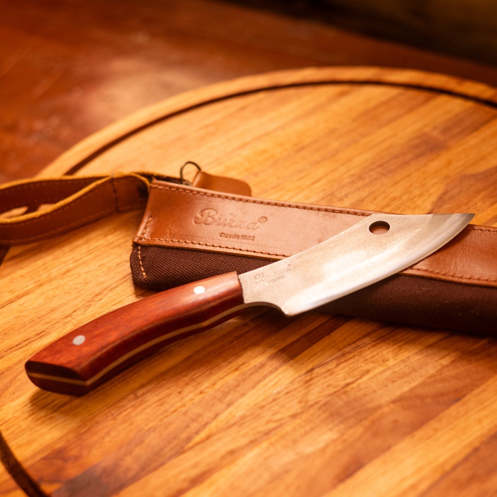 Essa faca é realmente uma excelente adição para quem aprecia churrasco e tábuas de frios! Leve e anatômica, ela possui uma pegada rústica encantadora e prática, tornando o fatiar e servir pequenas peças de carne muito mais fácil e eficiente. Além de ser perfeita para carnes, ela também se destaca ao ser utilizada em tábuas de frios, especialmente para queijos e embutidos.